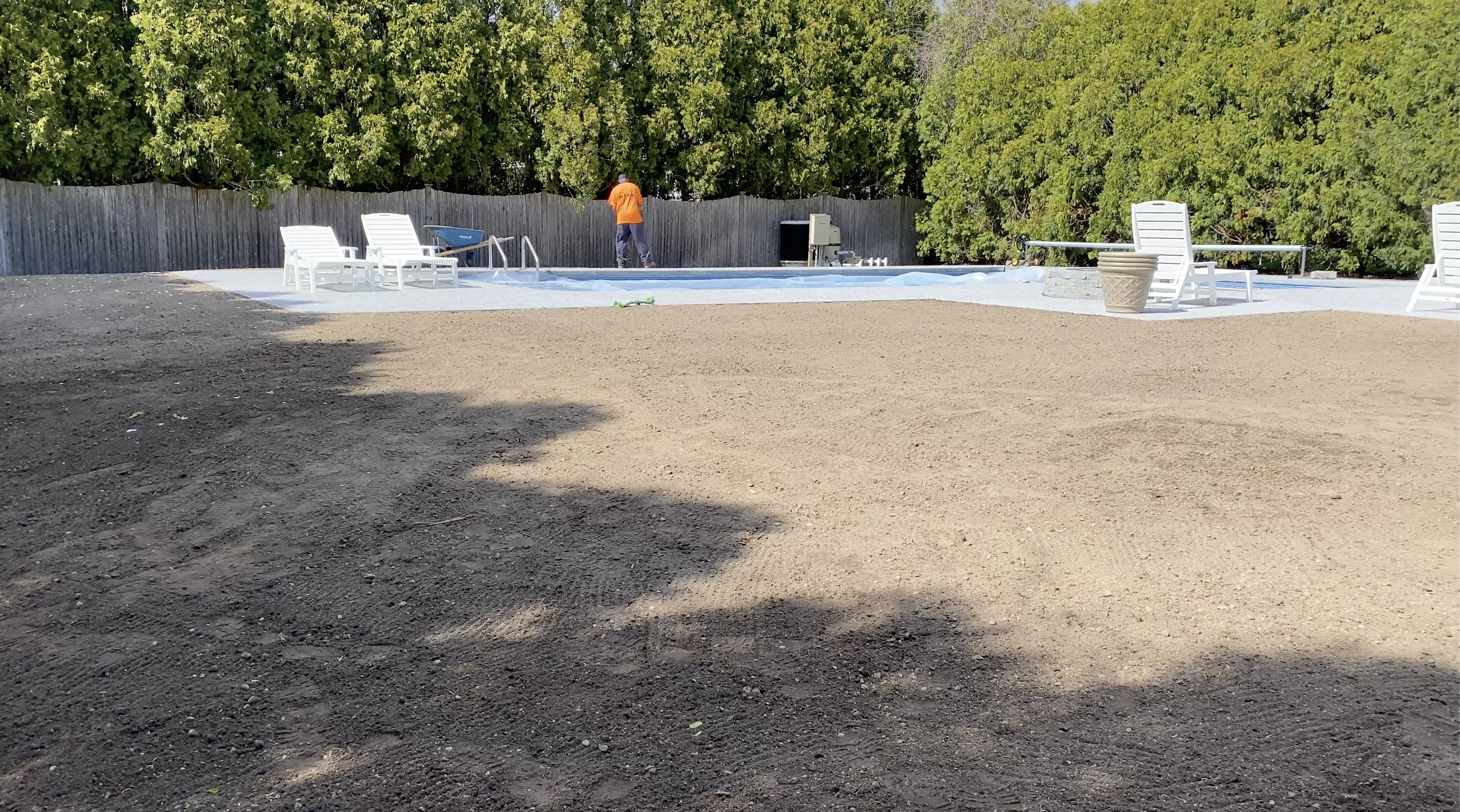 backyard regrading, drainage, loam and seed